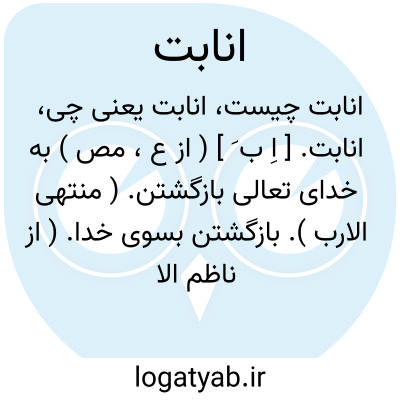 انابت. [ اِ ب َ ] ( از ع، مص ) به خدای تعالی بازگشتن. ( منتهی الارب ). بازگشتن بسوی خدا. ( از ناظم الاطباء ). بازگردیدن بسوی خداو بازگشتن از کارهای بد. توبه کردن و دعا خواستن. ( غیاث اللغات ) ( آنندراج ). بازگشتن. ( ترجمان جرجانی مهذب عادل بن علی ). || ( اِمص ) توبه. پشیمانی.( از فرهنگ فارسی معین ): و زاد آخرت را طعام و شراب نیست که ایمان و عمل صالح و توبه و انابت زاد آخرت است. ( تاریخ بیهق ص 81 ). بدو [ بمرجع ] بایدپیوست... و فزع او مشاهدت کرد آنگاه انابت مفید نباشد. ( کلیله و دمنه ). چون بمثل آن مبتلا شود در پناه توبت و انابت گریزد. ( کلیله و دمنه چ مینوی ص 340 ).