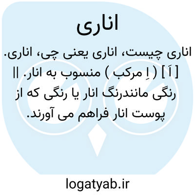اناری. [ اَ ] ( اِ مرکب ) منسوب به انار. || رنگی مانندرنگ انار یا رنگی که از پوست انار فراهم می آورند.