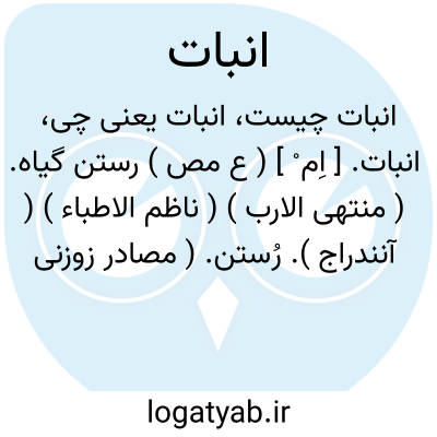 انبات. [ اِم ْ ] ( ع مص ) رستن گیاه. ( منتهی الارب ) ( ناظم الاطباء ) ( آنندراج ). رُستن. ( مصادر زوزنی ). برُستن. ( تاج المصادر بیهقی ). || رویانیدن.( منتهی الارب ) ( مصادر زوزنی ) ( تاج المصادر بیهقی ) ( آنندراج ). گویند انبت اﷲ نباتاً فهو منبوت. ( از منتهی الارب ) ( از ناظم الاطباء ). || موی زهار برآوردن کودک. ( منتهی الارب ) ( ناظم الاطباء ) ( آنندراج ).