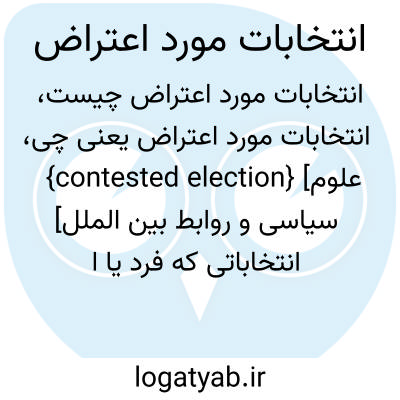 {contested election} [علوم سیاسی و روابط بین الملل] انتخاباتی که فرد یا افراد بازنده به نتیجۀ اعلام شدۀ آن اعتراض داشته باشند