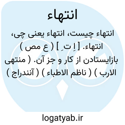 (اِ تِ ) [ ع. ] ۱ - (مص ل. ) به پایان آمدن، به نهایت رسیدن. ۲ - بازایستادن از کاری. ۳ - آگهی رسیدن. ۴ - (اِ. ) پایان، آخر.