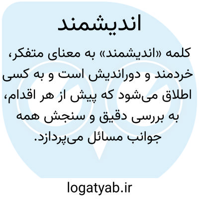 کلمه «اندیشمند» به معنای متفکر، خردمند و دوراندیش است و به کسی اطلاق می‌شود که پیش از هر اقدام، به بررسی دقیق و سنجش همه جوانب مسائل می‌پردازد. اندیشمند فردی است که به تحلیل منطقی امور اهمیت می‌دهد و با بینش وسیع خود، راه‌حل‌هایی مناسب برای مشکلات پیچیده ارائه می‌کند. او در تصمیم‌گیری‌ها همواره جانب دانش و تجربه را رعایت می‌کند و از عجله و شتابزدگی پرهیز دارد. خردمندی و تفکر عمیق از ویژگی‌های بارز اوست و همواره تلاش می‌کند تا تصمیماتش به نفع خود و دیگران باشد. اندیشمند با دقت به جزئیات توجه دارد و اثرات بلندمدت تصمیمات را در نظر می‌گیرد. چنین فردی معمولاً اهل مطالعه، پژوهش و تأمل است و نظراتش مبتنی بر منطق و تجربه است. اندیشمند مترادف با متفکر، دانشمند، بصیر و دوراندیش است و نقش مهمی در هدایت جامعه و حل مسائل فرهنگی، علمی و اجتماعی ایفا می‌کند. حضور او در جمع‌ها موجب افزایش آگاهی و تدبیر در تصمیم‌گیری‌ها می‌شود و همواره نقطه اتکایی برای دیگران است.