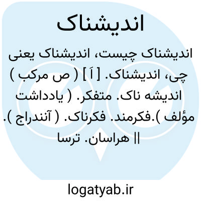 که دارد ره دور و درد و هلاک.نظامی.خاطری همراه من کنند که از دشمنی صعب اندیشناکم. ( گلستان ). پیرمردی جهاندیده درآن کاروان بود گفت ای یاران من از این مرد که بدرقه شماست اندیشناکم. ( گلستان ). اگر از آنکس که فرمانده تست اندیشناکی بر آن کس که فرمانبر تست لطف کن. ( مجالس سعدی ).