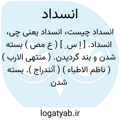 انسداد. [ اِ س ِ ] ( ع مص ) بسته شدن و بند گردیدن. ( منتهی الارب ) ( ناظم الاطباء ) ( آنندراج ). بسته شدن. ( از اقرب الموارد ) ( تاج المصادر بیهقی ) ( غیاث اللغات ). || ( اِمص ) بندآمدگی و گرفتگی و سدشدگی و بسته شدن راه. پ ( از ناظم الاطباء ). بستگی. ( یادداشت مؤلف ): از حال ضعف مراکب و فلول مضارب و انسداد وجوه مطالب او خبر دادند. ( ترجمه تاریخ یمینی ص 192 ). || ( اصطلاح پزشکی ) گرفتگی ومسدود شدن مجاری اعضای مختلف بدن. انقباض. قبض مجاری. ( فرهنگ فارسی معین ).