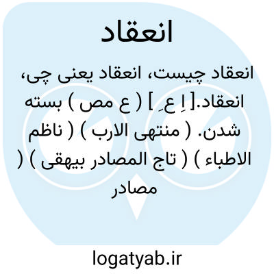 ۱ - ( مصدر ) غلیظ گشتن مایع بسته شدن ۲- بسته شدن پیمان. ۳ - آراسته شدن (جلسه مجلس ). ۴ - ( اسم ) بستگی. ۵ - آراستگی. جمع: انعقادات.