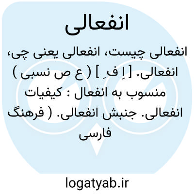 انفعالی. [ اِ ف ِ ] ( ع ص نسبی ) منسوب به انفعال: کیفیات انفعالی. جنبش انفعالی. ( فرهنگ فارسی معین ). مقابل فعلی. ( یادداشت مؤلف ).