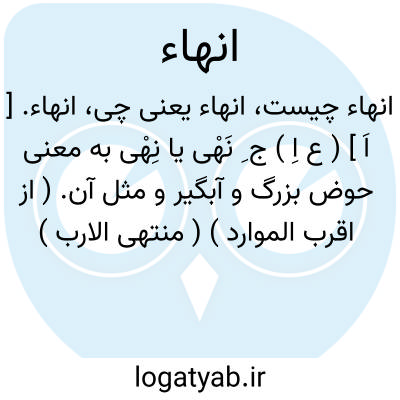 انهاء. [ اَ ] ( ع اِ ) ج ِ نَهْی یا نِهْی به معنی حوض بزرگ و آبگیر و مثل آن. ( از اقرب الموارد ) ( منتهی الارب ) ( آنندراج ). رجوع به نهی و انه شود.