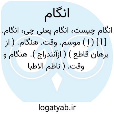 انگام. [ اَ ] ( اِ ) موسم. وقت. هنگام. ( از برهان قاطع ) ( ازآنندراج ). هنگام و وقت. ( ناظم الاطباء ):