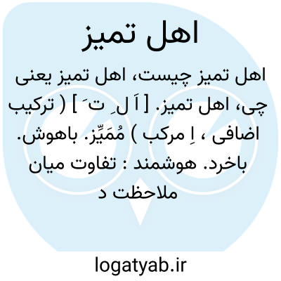 اهل تمیز. [ اَ ل ِ ت َ ] ( ترکیب اضافی، اِ مرکب ) مُمَیِّز. باهوش. باخرد. هوشمند: تفاوت میان ملاحظت دوستان و نظرت دشمنان ظاهرست و پوشانیدن آن بر اهل تمیز متعذر. ( کلیله و دمنه ).