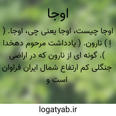 اوجا. ( اِ ) نارون. ( یادداشت مرحوم دهخدا ). گونه ای از نارون که در اراضی جنگلی کم ارتفاع شمال ایران فراوان است و آن را سیاه درخت نیز نامند. خوش سایه. پشه غال. پشه وار. پشه بانه. سده. ناژبن. بوقیصا. و رجوع به جنگل شناسی ج 2 ص 115، 120، 215 و نیز رجوع به نارون شود.