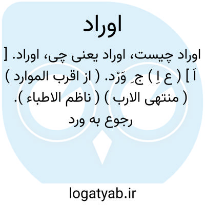 اوراد. [ اَ ] ( ع اِ ) ج ِ وَرْد. ( از اقرب الموارد ) ( منتهی الارب ) ( ناظم الاطباء ). رجوع به ورد شود. || ج ِ وِرْد. ( منتهی الارب ) ( ناظم الاطباء ) ( المنجد ) ( اقرب الموارد ). دعایی که بوقت معین خوانند. ( آنندراج ) ( غیاث اللغات ): اسباب معیشت ساخته و به اوراد و عبادات پرداخته. ( گلستان ).
