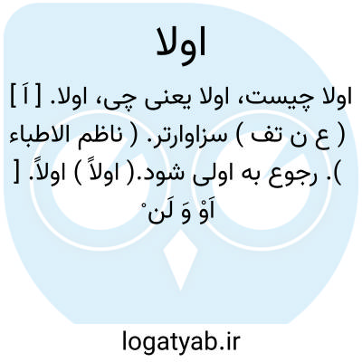 ( اولاً ) اولاً. [ اَوْ وَ لَن ْ ] ( ع ق ) نخستین. ( ناظم الاطباء ). در اول، پیش از همه: