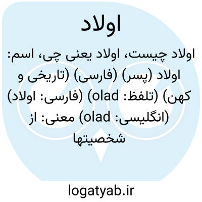 اسم: اولاد (پسر) (فارسی) (تاریخی و کهن) (تلفظ: olad) (فارسی: اولاد) (انگلیسی: olad)