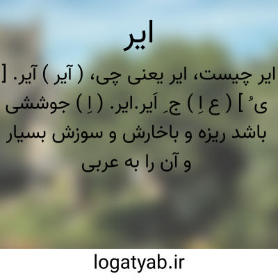 ایر. ( اِ ) جوششی باشد ریزه و باخارش و سوزش بسیار و آن را به عربی شری گویند. ( برهان ). جوششی باشد ریزه و با خارش و سوزش که بسبب خون به صفرا آمیخته شده بشره را سرخ گرداند و بعربی شری گویند. ( آنندراج ) ( انجمن آرا ). دانه های خرد که بر اندام برآید و خارش و سوزش بسیار کند و به عربی شری گویند. ( رشیدی ). جوششی ریزه و با خارش که بر بدن آدمی برآید ونبات اللیل گویند. ( ناظم الاطباء ). || دمل. ( برهان ) ( هفت قلزم ) ( آنندراج ) ( انجمن آرا ).