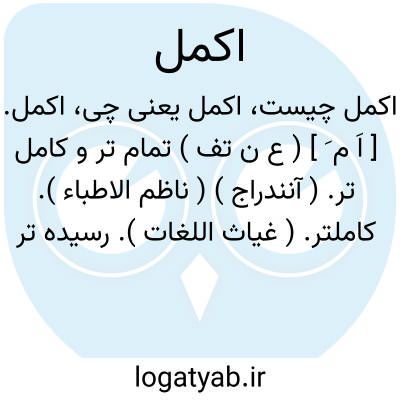 اکمل. [ اَ م َ ] ( ع ن تف ) تمام تر و کامل تر. ( آنندراج ) ( ناظم الاطباء ). کاملتر. ( غیاث اللغات ). رسیده تر. رساتر: بنحو اکمل؛ بطریق کاملتر. بنحو اتم. ( فرهنگ فارسی معین ):