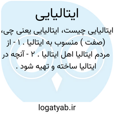 (صفت ) منسوب به ایتالیا. ۱ - از مردم ایتالیا اهل ایتالیا. ۲ - آنچه در ایتالیا ساخته و تهیه شود.