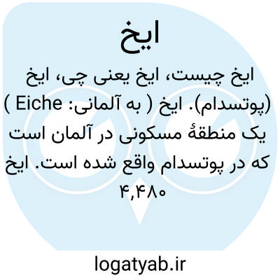 ایخ (پوتسدام). ایخ ( به آلمانی: Eiche ) یک منطقهٔ مسکونی در آلمان است که در پوتسدام واقع شده است. ایخ ۴٬۴۸۰ نفر جمعیت دارد.