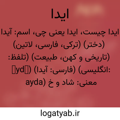 اسم: آیدا (دختر) (ترکی، فارسی، لاتین) (تاریخی و کهن، طبیعت) (تلفظ: āydā) (فارسی: آيدا) (انگلیسی: ayda)