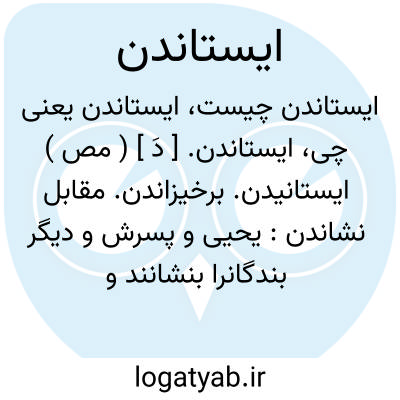 ایستاندن. [ دَ ] ( مص ) ایستانیدن. برخیزاندن. مقابل نشاندن: یحیی و پسرش و دیگر بندگانرا بنشانند و بایستانند. ( تاریخ بیهقی چ ادیب ص 424 ). || نشاندن و نصب کردن. ( ناظم الاطباء ).گماردن: بونصر مشکان را بگوی تا دبیری نامزد کند و از خازنان کسی بایستاند. ( تاریخ بیهقی چ ادیب ص 245 ). || افراخته کردن و بلند نمودن. || برانگیختن و افراشتن. || مقرر کردن. ( ناظم الاطباء ). رجوع به ایستانیدن شود.