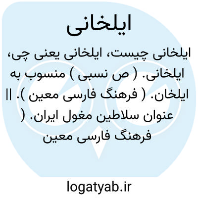 ایلخانی. ( ص نسبی ) منسوب به ایلخان. ( فرهنگ فارسی معین ). || عنوان سلاطین مغول ایران. ( فرهنگ فارسی معین ). نام سلسله ای که در ایران سلطنت کردند از مغولان. || ( حامص ) ایلخان بودن. مقام و رتبه ایلخان. ( فرهنگ فارسی معین ). || رئیس ایل. ( یادداشت بخط مؤلف ). ایل خان.