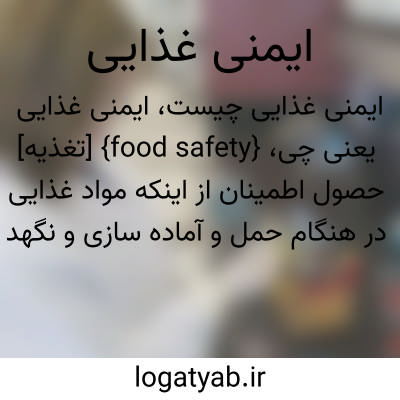 به حصول اطمینان از اینکه مواد غذایی در هنگام حمل و آماده سازی و نگهداری، آلودگیهای میکروبی و شیمیایی و فیزیکی پیدا نمی کنند و سبب بیماری مصرف کنندگان نمی شوند، ایمنی غذایی می گویند.