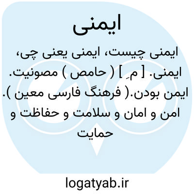 ایمنی. [ م ِ ] ( حامص ) مصونیت. ایمن بودن.( فرهنگ فارسی معین ). امن و امان و سلامت و حفاظت و حمایت و کامرانی و سعادت. ( ناظم الاطباء ):