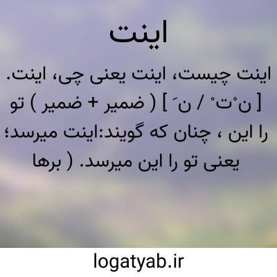 اینت. [ ن ْت ْ / ن َ ] ( ضمیر + ضمیر ) تو را این، چنان که گویند:اینت میرسد؛ یعنی تو را این میرسد. ( برهان ) ( هفت قلزم ). این تو را. ( آنندراج ) ( انجمن آرا ):