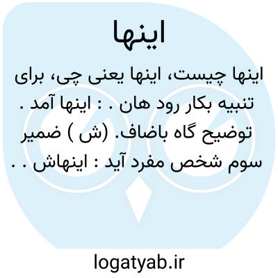 برای تنبیه بکار رود هان.: اینها آمد. توضیح گاه باضاف. (ش ) ضمیر سوم شخص مفرد آید: اینهاش..