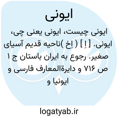 ایونی. [ اِ ] ( اِخ )ناحیه قدیم آسیای صغیر. رجوع به ایران باستان ج 1 ص 716 و دایرةالمعارف فارسی و ایونیا و ایونیه شود.
