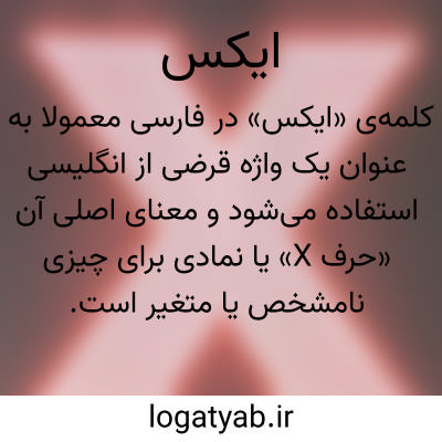 کلمه‌ی «ایکس» در فارسی معمولاً به عنوان یک واژه قرضی از انگلیسی استفاده می‌شود و معنای اصلی آن «حرف X» یا نمادی برای چیزی نامشخص یا متغیر است. این واژه از الفبای لاتین گرفته شده و در ریاضیات، علوم و مکالمات روزمره به عنوان علامت ناشناخته یا مجهول به کار می‌رود. در ریاضیات، ایکس معمولاً نماد یک متغیر یا عدد مجهول در معادلات و فرمول‌ها است و به دانش‌آموزان و دانشجویان کمک می‌کند تا روابط عددی را بیان کنند. در علوم دیگر، مانند فیزیک و شیمی، می‌تواند نماینده یک پارامتر ناشناخته یا یک موقعیت مشخص در نمودارها و نمودارهای مختصات باشد. در مکالمات روزمره و رسانه‌ها، «ایکس» گاهی به معنای چیز مرموز، ناشناخته یا ناشناخته‌هویت نیز به کار می‌رود. این واژه می‌تواند به صورت صفت یا اسم استفاده شود و بار معنایی خنثی دارد. در فرهنگ عامه و سرگرمی‌ها، مانند نام فیلم، شخصیت یا برند، ایکس اغلب برای جذابیت، رمز و راز و ناشناختگی به کار می‌رود. مترادف‌هایی که نزدیک به معنای آن هستند شامل ناشناخته، مجهول، نامعلوم یا X در زبان انگلیسی است.
