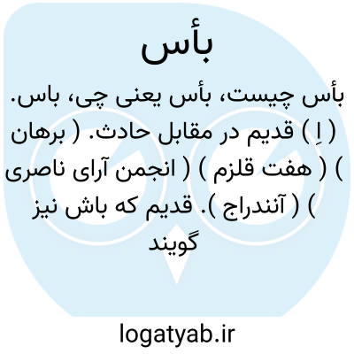 باس. ( اِ ) قدیم در مقابل حادث. ( برهان ) ( هفت قلزم ) ( انجمن آرای ناصری ) ( آنندراج ). قدیم که باش نیز گویند. ( ناظم الاطباء ) ( فرهنگ دساتیر 234 ). و آن جزو اول باستان است. ( حاشیه برهان قاطع چ معین ). بمعنی کهنه و قدیم از مجعولات دساتیر است. ( یادداشت مؤلف ). || زارع. کشاورز. ( ناظم الاطباء ).
