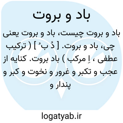 باد و بروت. [ دُ ب ُ ] ( ترکیب عطفی، اِ مرکب ) باد بروت. کنایه از عجب و تکبر و غرور و نخوت و کبر و پندار و اعجاب و طنطنه و طمطراق باشد. رجوع به باد بروت شود.