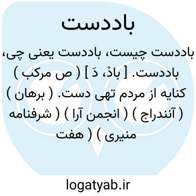 باددست. [ بادْ، دَ ] ( ص مرکب ) کنایه از مردم تهی دست. ( برهان ) ( آنندراج ) ( انجمن آرا ) ( شرفنامه منیری ) ( هفت قلزم ) ( ناظم الاطباء ). مفلس. ( غیاث ):