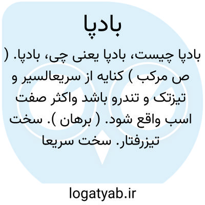 بادپا. ( ص مرکب ) کنایه از سریعالسیر و تیزتک و تندرو باشد واکثر صفت اسب واقع شود. ( برهان ). سخت تیزرفتار. سخت سریعالسیر. ( شرفنامه منیری ) ( غیاث ) ( انجمن آرا ):