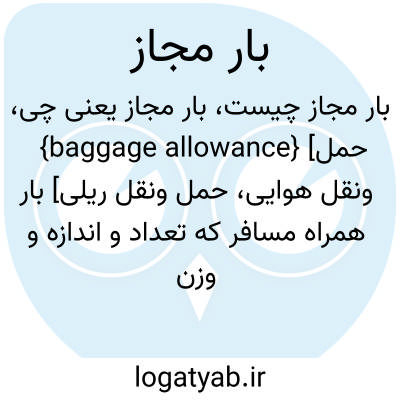 {baggage allowance} [حمل ونقل هوایی، حمل ونقل ریلی] بار همراه مسافر که تعداد و اندازه و وزن آن براساس نوع بلیت تعیین می شود
