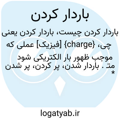 {charge} [فیزیک] عملی که موجب ظهور بار الکتریکی شود متـ. باردار شدن، پر کردن، پر شدن * پر کردن در مورد باتری و خازن به کار می رود و باردار کردن در مورد اجسامی که مثلاً به روش مالش باردار می شوند. در زبان فارسی شارژ گاهی به معنای باردار شدن به کار می رود.
