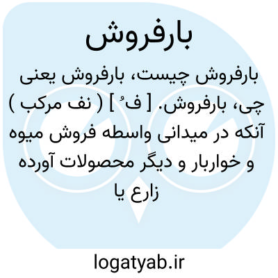 بارفروش. [ ف ُ ] ( نف مرکب ) آنکه در میدانی واسطه فروش میوه و خواربار و دیگر محصولات آورده زارع یا چاروادار و یا ساربان است. آنکه بار دیگران را فروشد و خود نخرد و واسطه فروشنده و خریدار باشد.