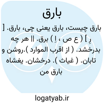 بارق. [ رِ ] ( ع ص، اِ ) برق. || هر چه بدرخشد. ( از اقرب الموارد ).روشن و تابان. ( غیاث ). درخشان. یغشاه بارق من نوره.( حکمت اشراق چ 1331 انجمن ایران و فرانسه ص 348 ). || شمشیر درخشان. ( دِمزن ). || ابربابرق. ( اقرب الموارد ) ( منتهی الارب ) ( دِمزن ) ( آنندراج ) ( تاج العروس ). ابر برق دارنده. ( فرهنگ نظام ).