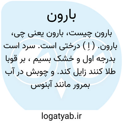 بارون. ( اِ ) درختی است. سرد است بدرجه اول و خشک بسیم، بر قوبا طلا کنند زایل کند. و چوبش در آب بمرور مانند آبنوس شود.سبکتر از مازو است و بوی خوش دارد. ( نزهةالقلوب ).