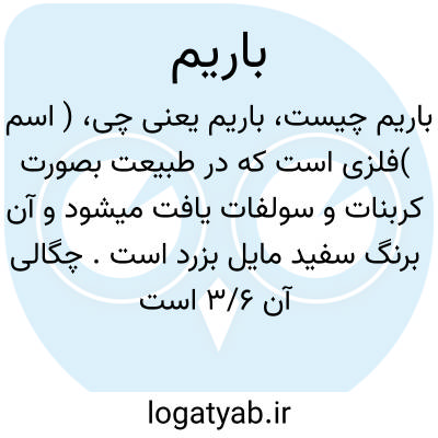 ( اسم )فلزی است که در طبیعت بصورت کربنات و سولفات یافت میشود و آن برنگ سفید مایل بزرد است. چگالی آن ۳/۶ است و هیچگونه اهمیت صنعتی ندارد و مانند کلسیم آبرا باسانی تجزیه می کند. و از غیر محلول ترین اجسام است و چون اشع. ایکس از آن نمیگذرد در عکس براداری از روده ها از آن استفاده میشود یعنی مقدار نسبه زیادی از آنرا به بیمار میخورانند و آن داخل روده ها را اندوه کرده در زیر اشع. بصورت کدری آشکار میگردد. برای تهی. باریوم فلزی کلرور باریوم گداخته را در اثر روان کردن برق تجزیه میکنند.
