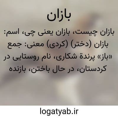 معنی: جمع «باز» پرندة شکاری، نام روستایی در کردستان، در حال باختن، بازنده ( نگارش کردی