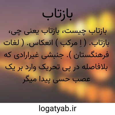 بازتاب. ( اِ مرکب ) انعکاس. ( لغات فرهنگستان ). جنبشی غیرارادی که بلافاصله در پی تحریک وارد بر یک عصب حسی پیدا میگردد. اینگونه حرکت بیشتر اوقات بصورت قبض و بسط عضلانی ظاهر میشود. مانند تنگ و فراخ شدن مردمک چشم زیر تأثیر روشنائی. رجوع شود به روانشناسی پرورشی سیاسی ص 245.