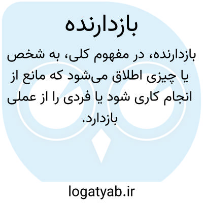 بازدارنده. [ رَ دَ / دِ ] ( نف مرکب ) آنکه یا آنچه کسی را از امری باز دارد: نَهُوّ. مَنوع. ( منتهی الارب ). مانع. ( منتهی الارب ) ( دهار ). عَوق؛ آنکه از خیر باز دارد. عائق. عاضِر. ( منتهی الارب ). رادع. حاجب. واقِف. عاصِم. حابِس. حائل. عاکف. عایق. مُعَوِّق. دافِع. مَنّاع. زاجِر. ( دهار ).