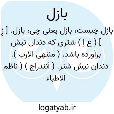 بازل. [ زِ ] ( ع اِ ) شتری که دندان نیش برآورده باشد. ( منتهی الارب ). دندان نیش شتر. ( آنندراج ) ( ناظم الاطباء ). اشتر دندان نیش برآورده. و این در سال نهم باشد و بعد از آن دیگر شتر به سنی نامیده نمیشود وفی المثل بازل عام و بازل عامین گویند. شتری که به سال نهم درآید. ( منتخب غیاث اللغات ) ( صبح الاعشی ج 2 ص 34 ). شتر پیر که دندان پیشین او بالا برآمده باشد. و مذکر و مؤنث در وی یکسان است. ( آنندراج ). ج، بَوازِل، بُزَّل. بُزل. و بُزُل. ( ناظم الاطباء ):