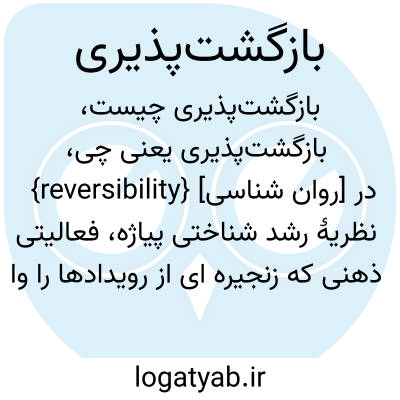{reversibility} [روان شناسی] در نظریۀ رشد شناختی پیاژه، فعالیتی ذهنی که زنجیره ای از رویدادها را وارونه می کند یا حالت تغییریافته ای از امور را به وضعیت اولیۀ خود بازمی گرداند