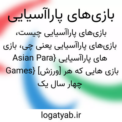 {Asian Para Games} [ورزش] بازی هایی که هر چهار سال یک بار و بعد از بازی های آسیایی برای ورزشکاران دارای معلولیت جسمی برگزار می شود متـ. بازی های آسیایی معلولان