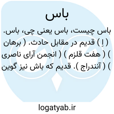 باس. ( اِ ) قدیم در مقابل حادث. ( برهان ) ( هفت قلزم ) ( انجمن آرای ناصری ) ( آنندراج ). قدیم که باش نیز گویند. ( ناظم الاطباء ) ( فرهنگ دساتیر 234 ). و آن جزو اول باستان است. ( حاشیه برهان قاطع چ معین ). بمعنی کهنه و قدیم از مجعولات دساتیر است. ( یادداشت مؤلف ). || زارع. کشاورز. ( ناظم الاطباء ).