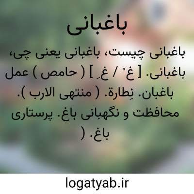 باغبانی. [ غ ْ / غ ِ ] ( حامص ) عمل باغبان. نِطارة. ( منتهی الارب ). محافظت و نگهبانی باغ. پرستاری باغ. ( ناظم الاطباء ). باغ پیرائی. بستان بانی: