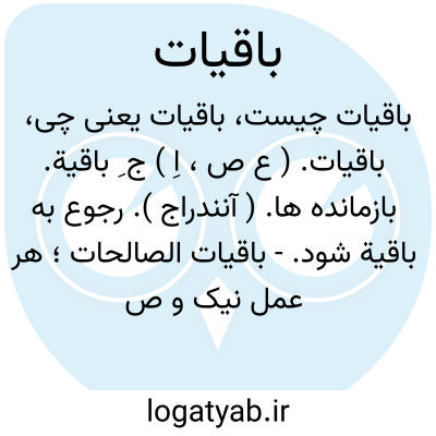 ( صفت اسم ) جمع باقیه. یا باقیات صالحات. عملهای صالح کارهای نیکو اعمالی که ثواب اخروی نصیب شخص کند.