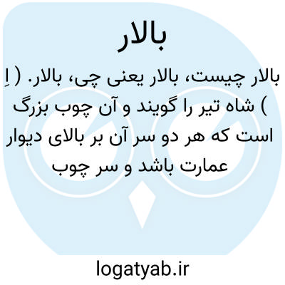 بالار. ( اِ ) شاه تیر را گویند و آن چوب بزرگ است که هر دو سر آن بر بالای دیوار عمارت باشد و سر چوبهای دیگر را بر بالای آن گذارند. ( برهان قاطع ). آن دار باشد که بدو خانه ها پوشند. فرسب باشد. ( فرهنگ اسدی ).تیر سقف که فرسب و فلوزه هم گویند. ( فرهنگ شعوری ج 1 ص 161 ). شه تیر. ( فرهنگ جهانگیری ). شاه تیر بزرگ و آنرا باکر و بالال نیز گفته اند. ( از آنندراج ) ( انجمن آرای ناصری ). فرسب که بدان بام خانه پوشند. ( شرفنامه منیری ). حمال. فرسبی است یعنی چوبی است که بام خانه را بدو پوشند و بعضی آنرا فلوزه گویند. ( فرهنگ اوبهی ). شاه تیر و حمال عمارت. ( ناظم الاطباء ):